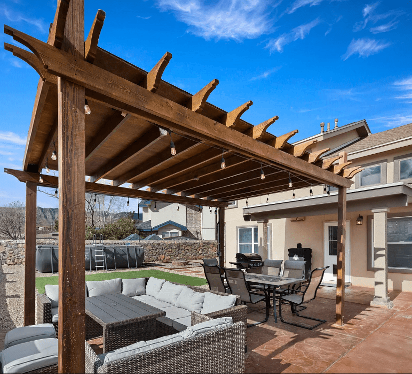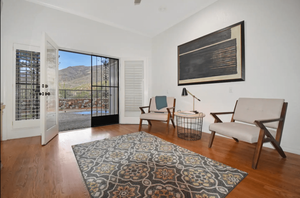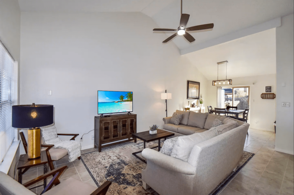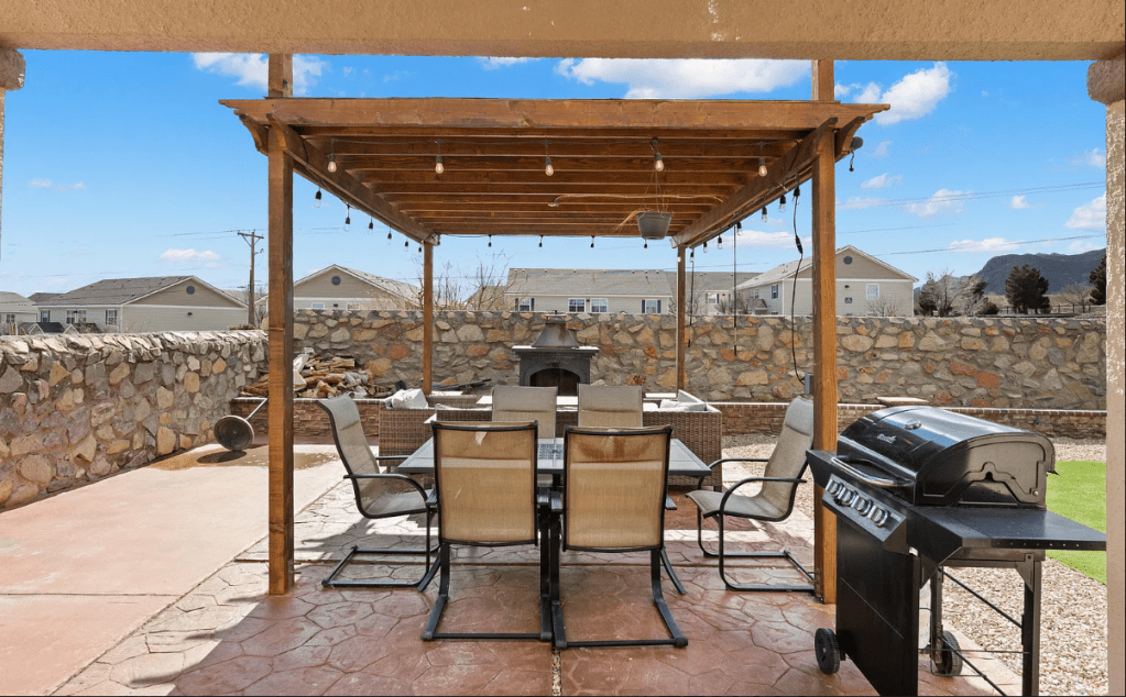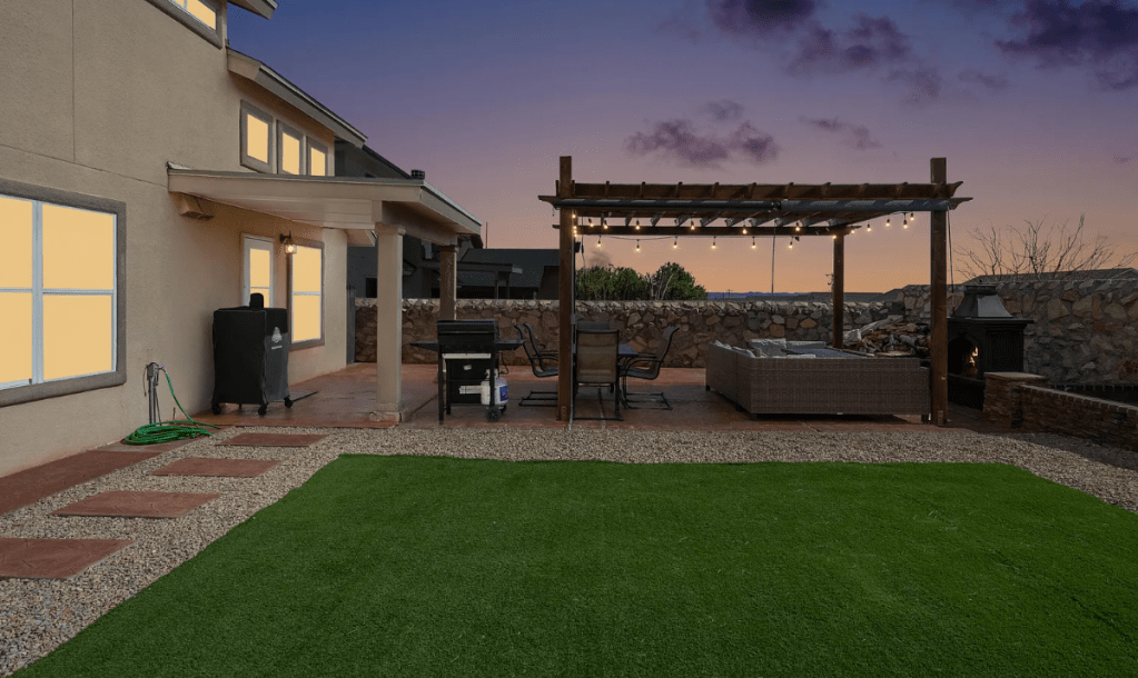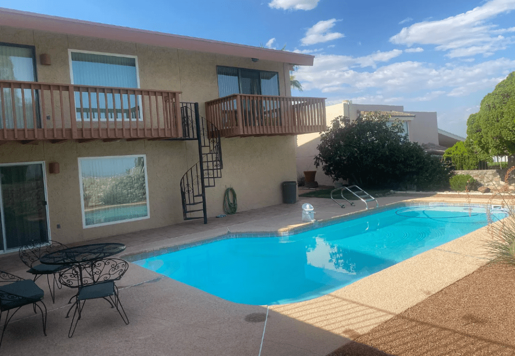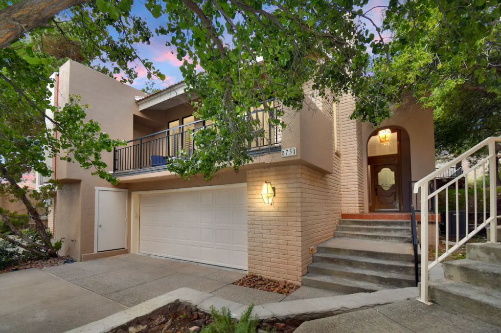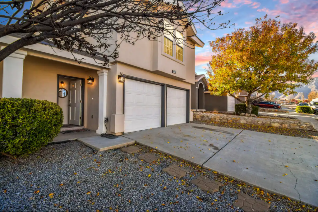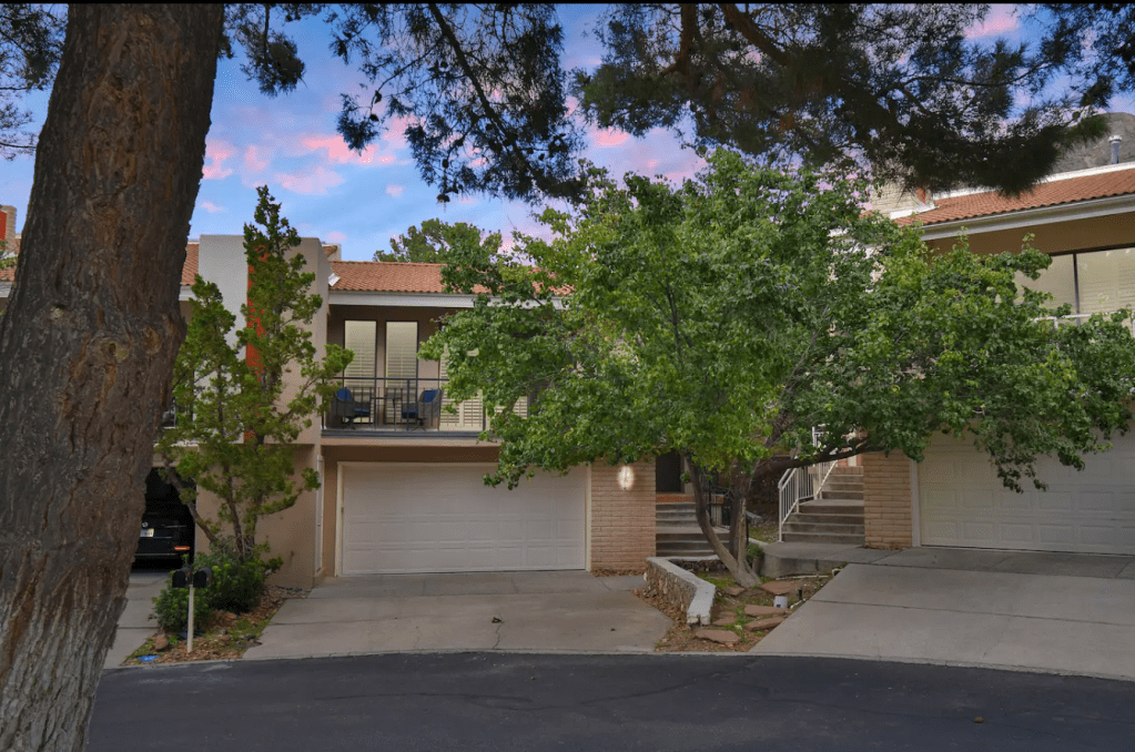 A grand mountainside townhouse, located in El Paso’s prime Westside location with stunning views! Complete with tennis courts, lush green landscapes & beautiful community spaces. Property includes; 2 bed rooms & 2 bathrooms | a comfortable family room with fireplace & wood beamed ceilings. The LR & DR opens up to the terrace | The kitchen is updated & fully stocked | Spacious master bedroom & spa-like master bath | backyard patio with direct mountain views | double car garage & so much more! Make your El Paso visit feel just at home!