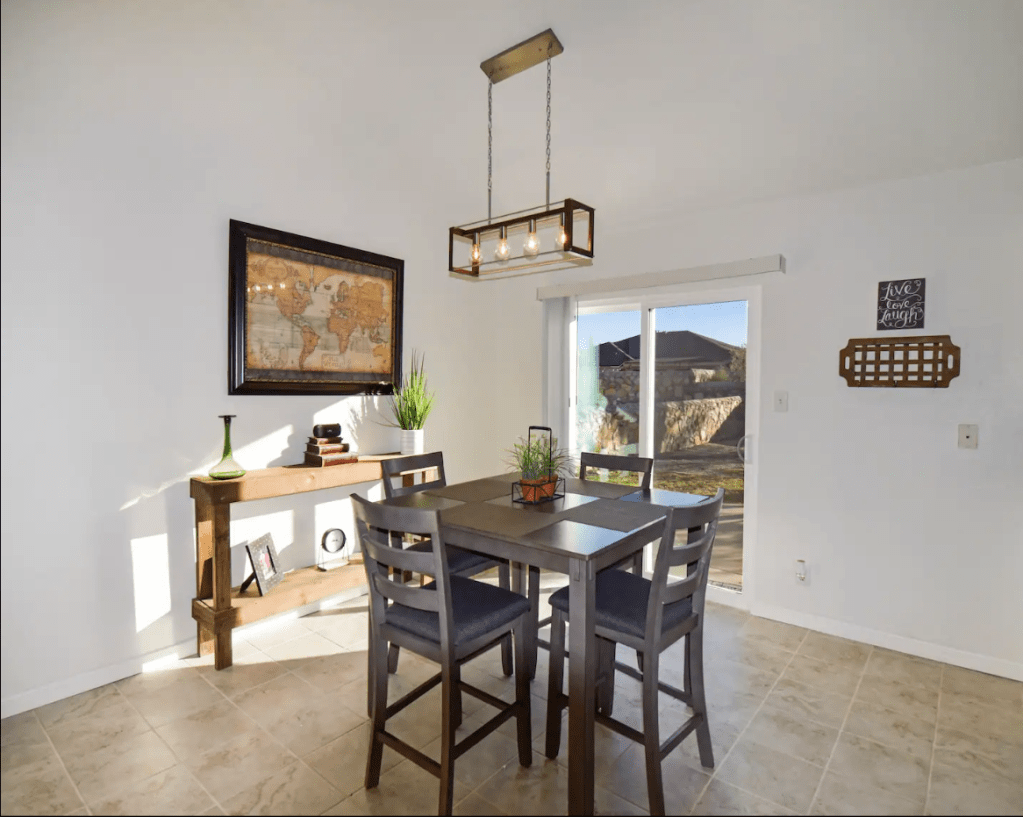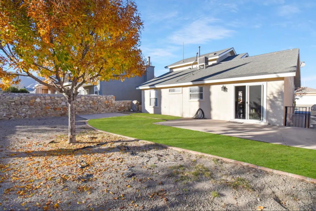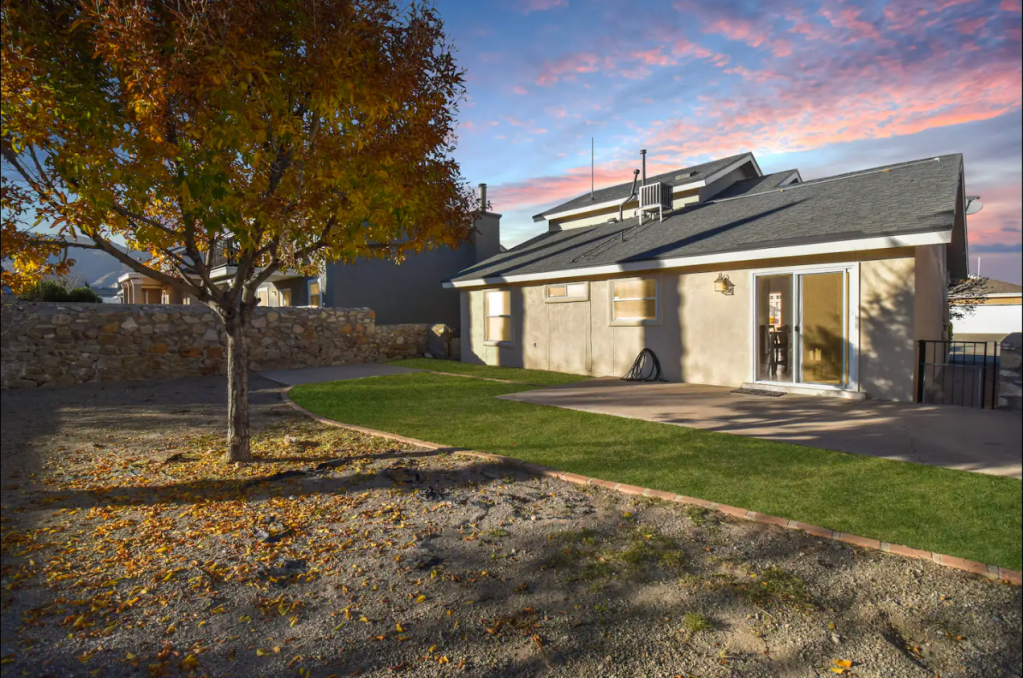 North Hills home, seconds away from Franklin Mountain State Park & Chuck Heinrich Park where you can bike, hike or walk! Located in excellent Northeast location, close to restaurants, Fort Bliss & quick access to highway. Clean, comfy & freshly remodeled! Property includes; 3 BR + 2 BA | a spacious FR & open spaces | kitchen is fully stocked | Master BR located downstairs | Backyard patio w/ lovely backyard & some mountain views | double car garage & so much more.. Come stay a while!
